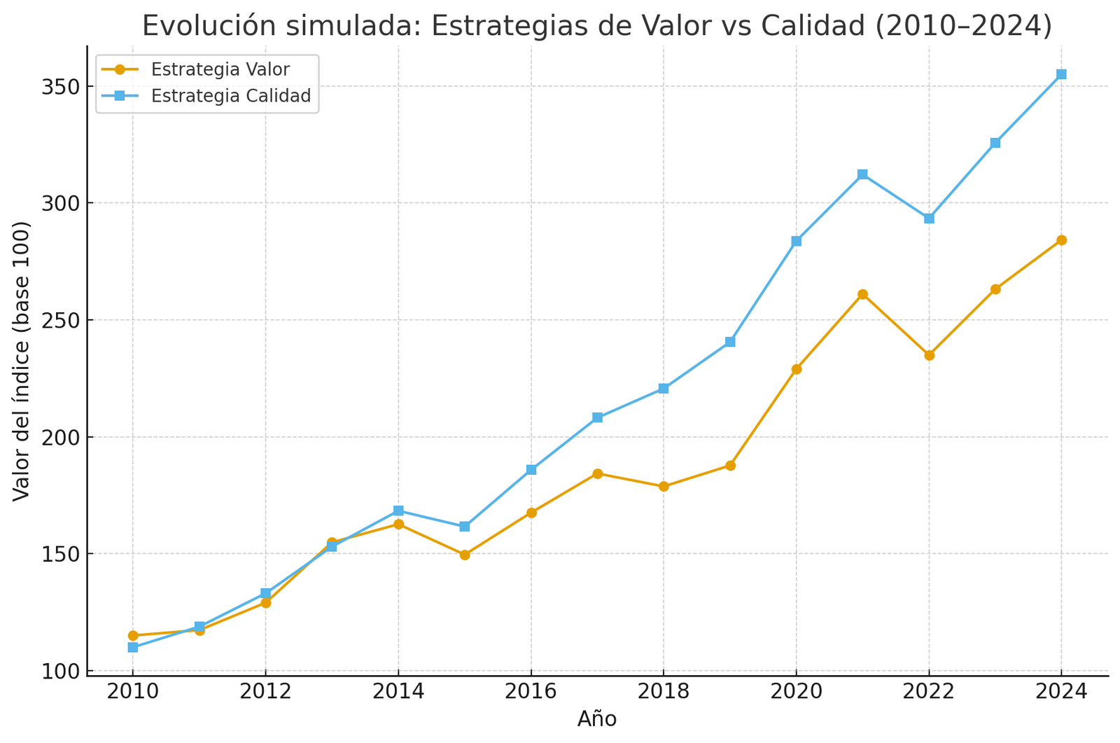 La calidad, por su parte, paga en forma de crecimiento constante o dividendos sostenibles.