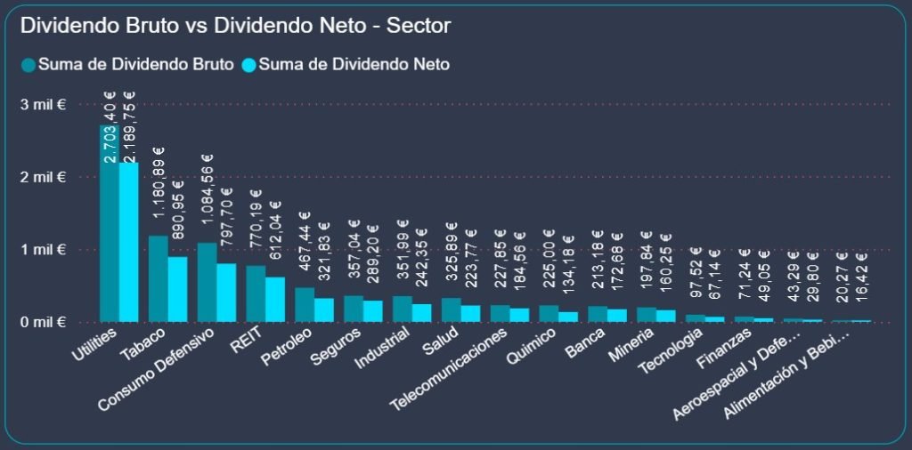 Los sectores defensivos siguen dominando la generación de flujo pasivo, mientras que petróleo, industrial y salud actúan como soporte diversificado.
